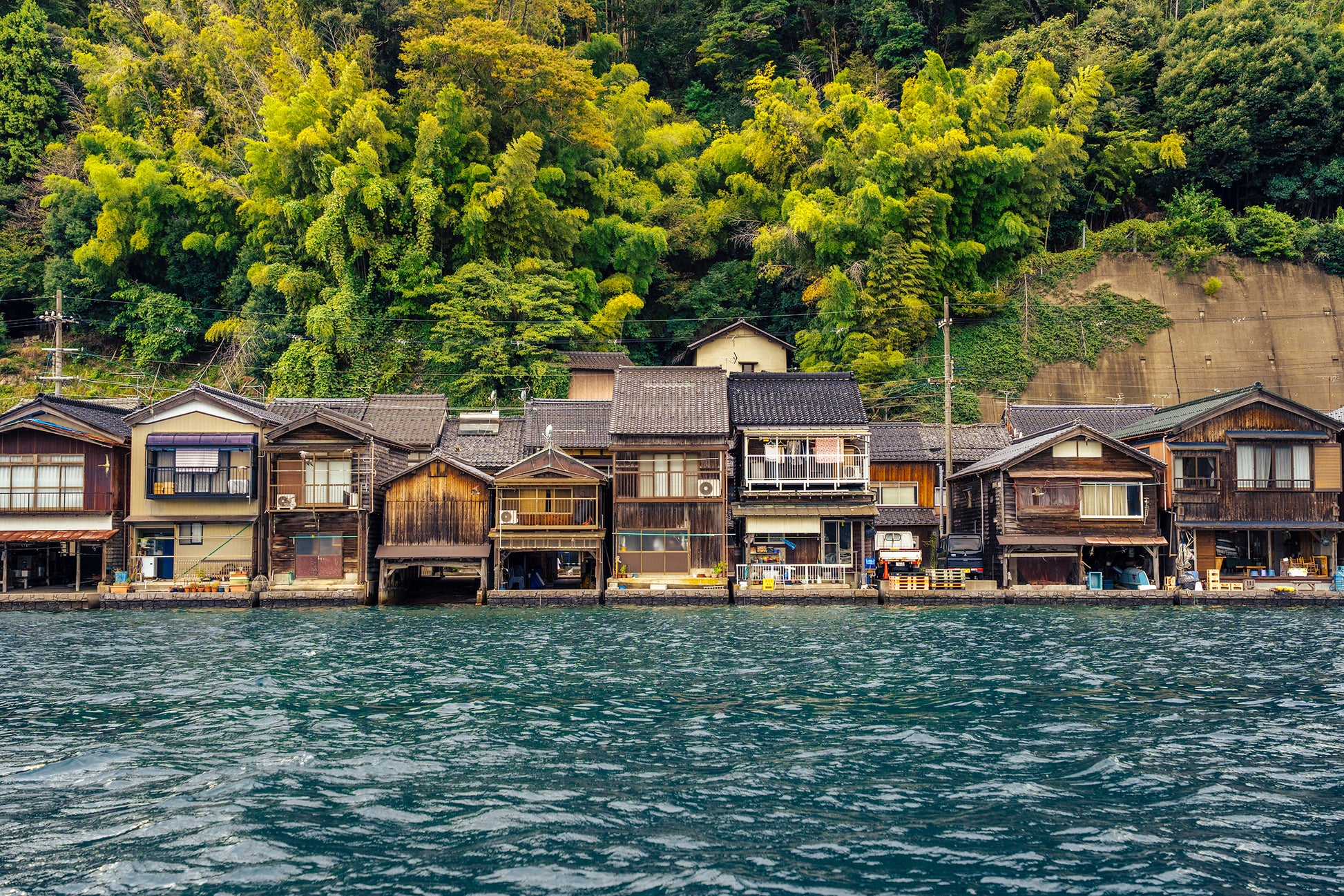 Boathouses, called "Funaya" line the coast of the Ine Bay