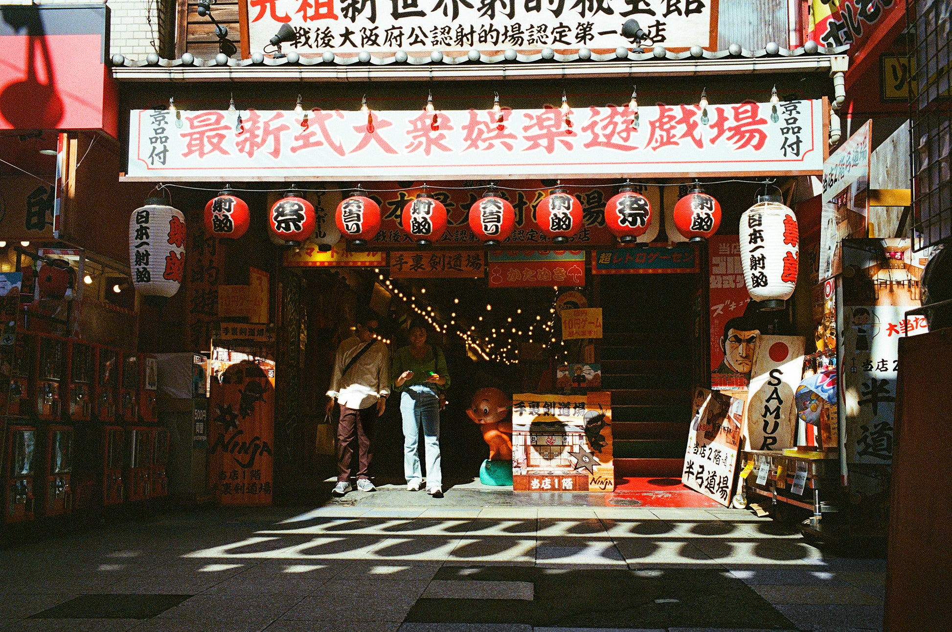 The New World district of Osaka is filled with colorful signs, unique shops, and retro arcades full of prizes