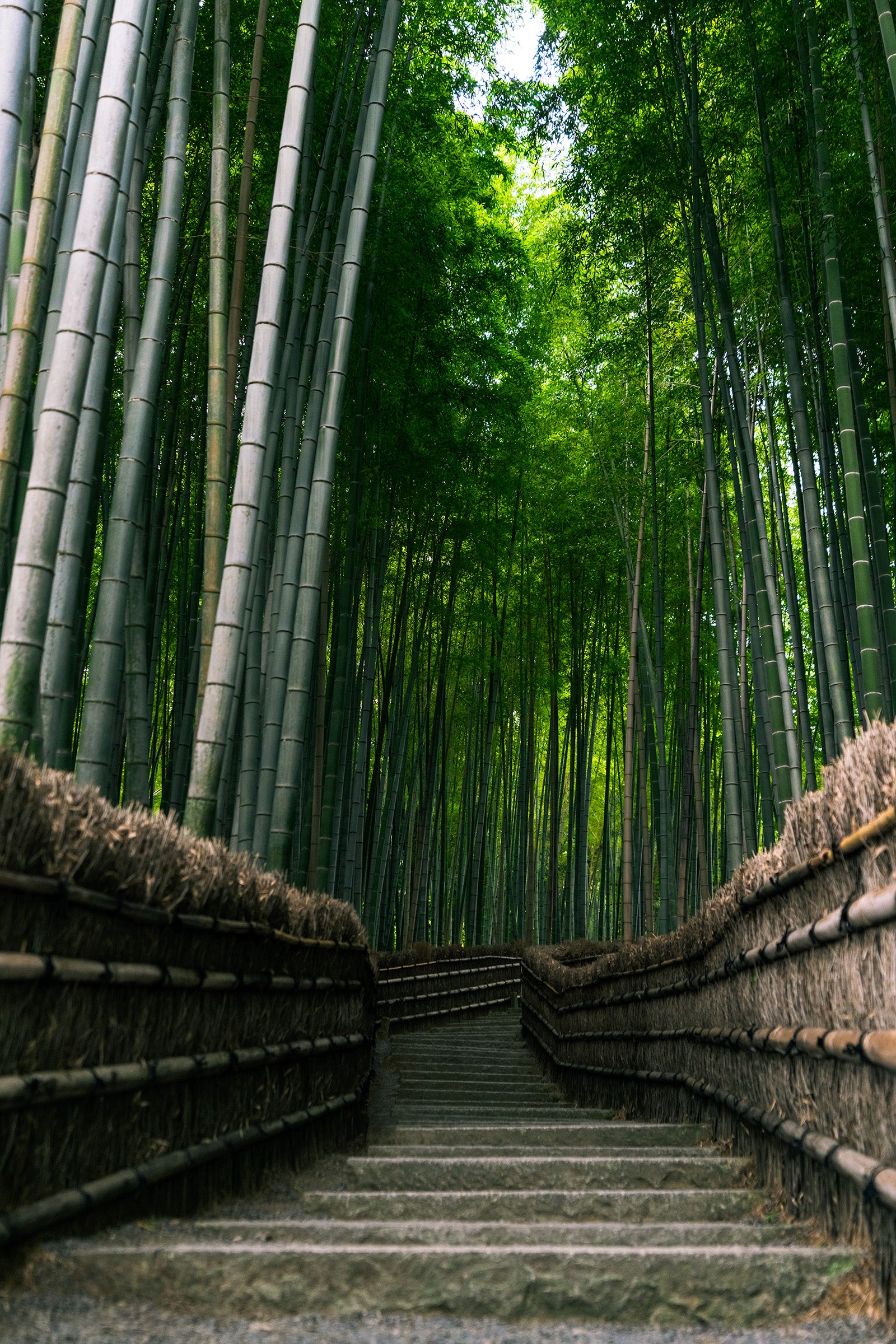 The towering stalks of bamboo surrounding this staircase makes you feel as though you are on another planet