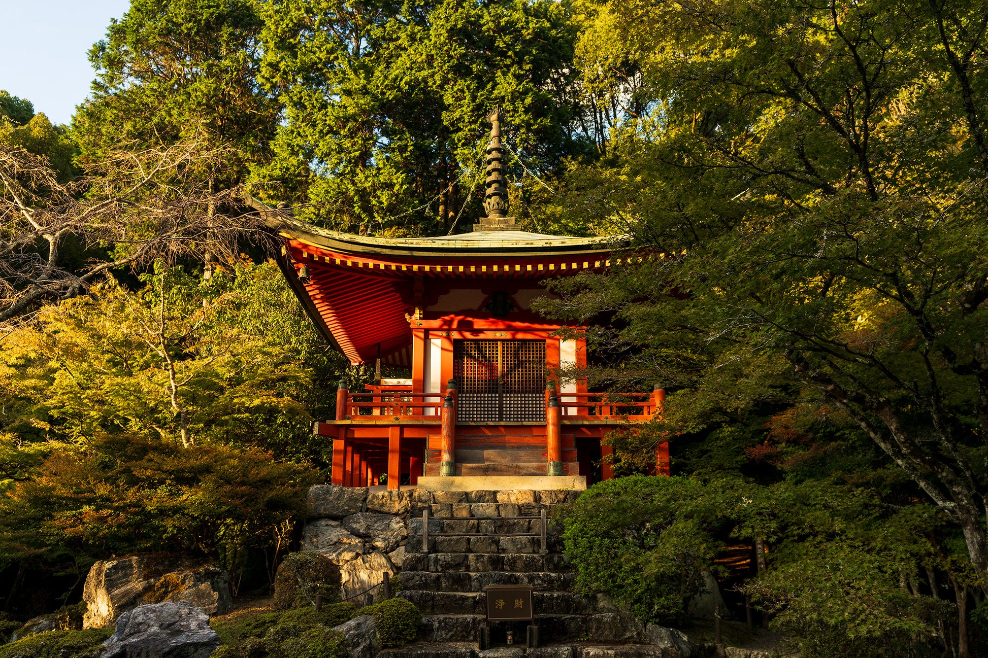 The Bentendo Hall structure illuminated in golden light was dedicated to Buddhist Goddess Benzaiten